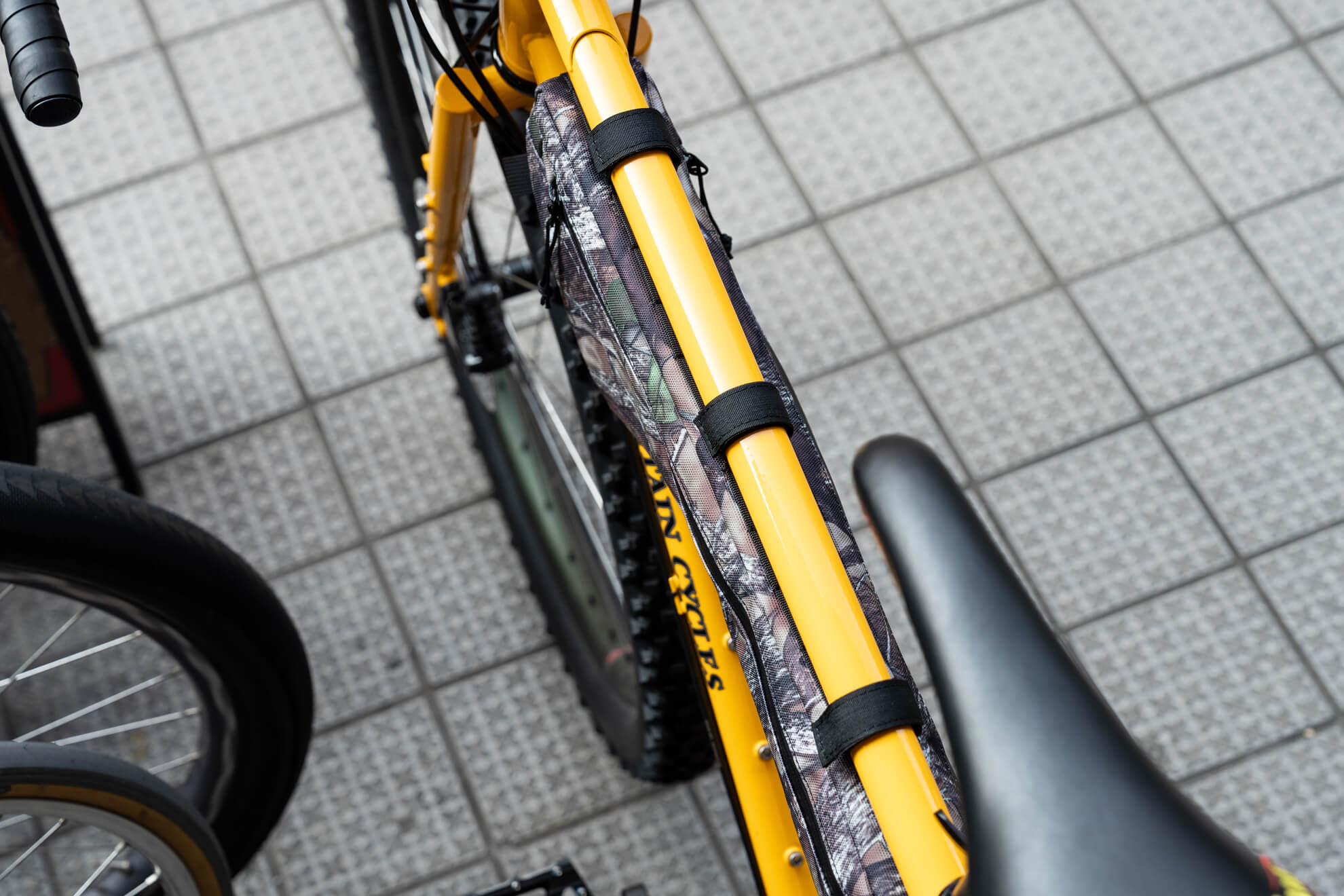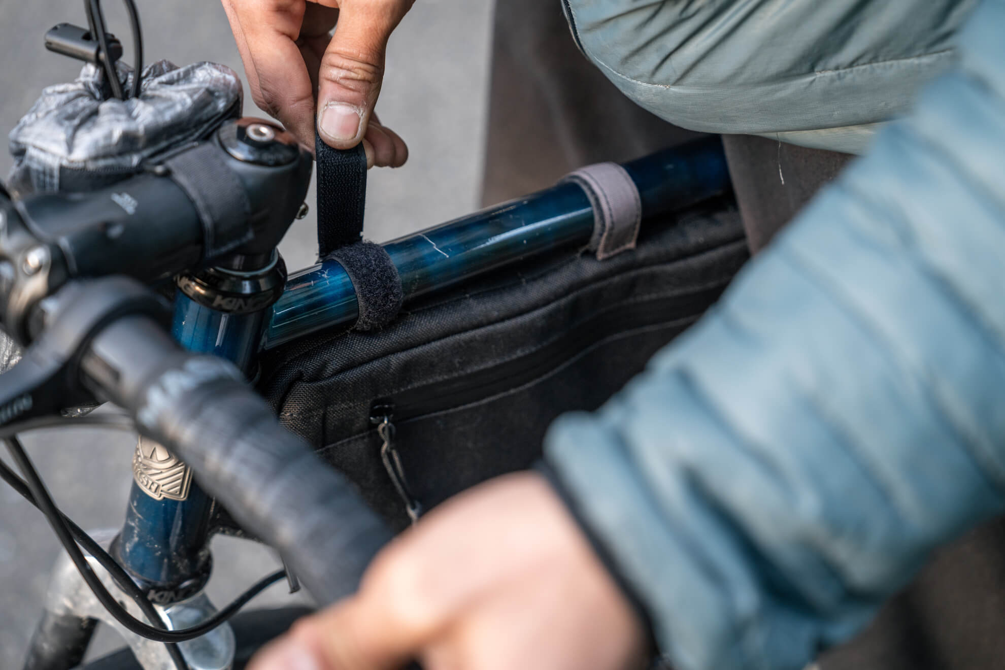 The attachment is the same as FRAME BAG ADV. The placement of the velcro straps can be altered.