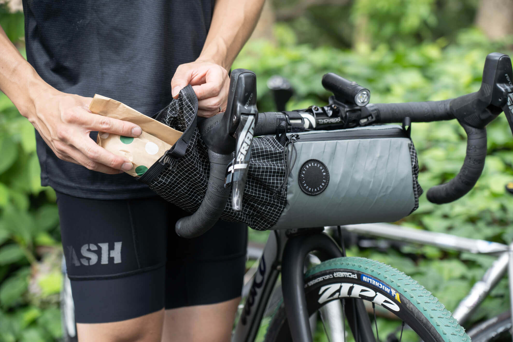 A bar bag designed to fit nicely on drop bars.