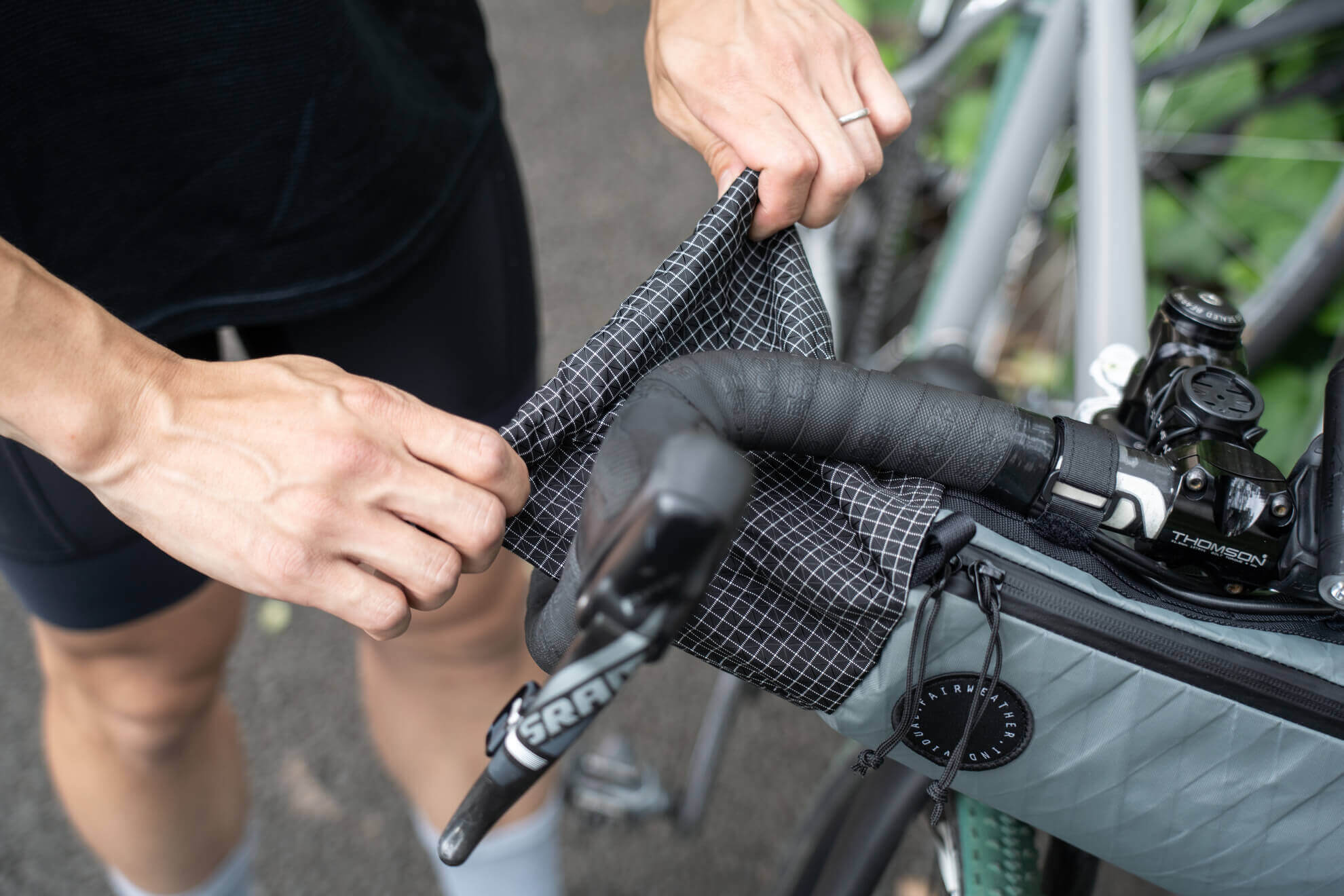 The main compartment has a 5mm urethane interlining, which makes the bag stay in shape, while have a few nicknacks stored inside and protects your bike frame from getting scratches.