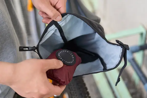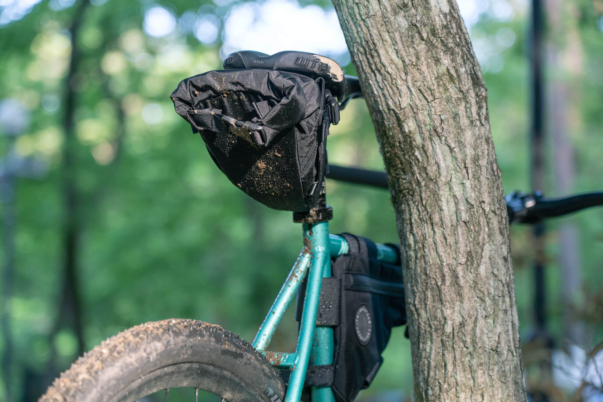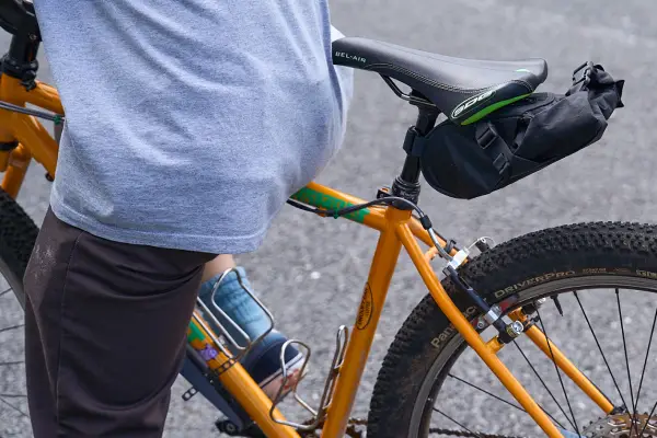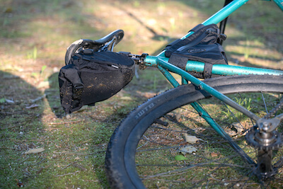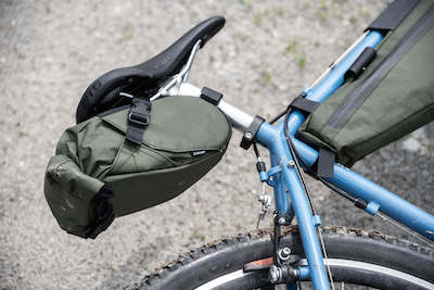 It can fit a small tool set and spare inner tubes. You are able to expand the roll-top closure when you want to squeeze in that "one last thing".